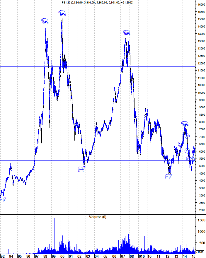 Aqui ficam os gráficos actualizados do PSI numa altura em que parece ainda mais clara a importância daquela muralha da China nos 6300 pontos.