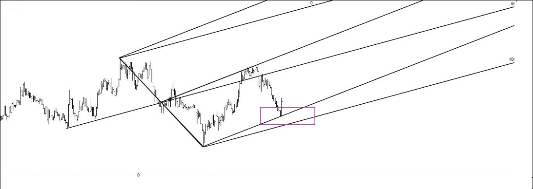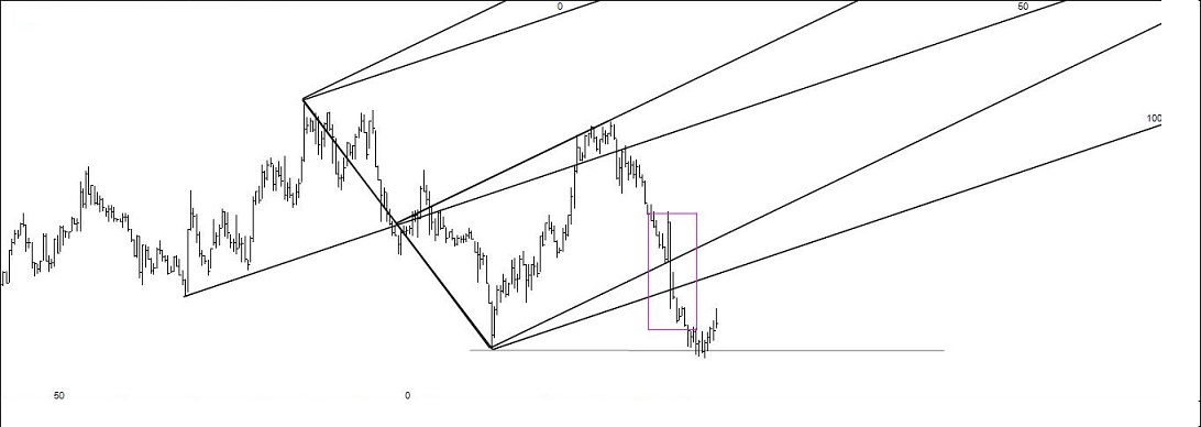 Entrei no sítio que assinalei com o pequeno círculo rosa. Embora viesse perseguindo lá de cima, como tive oportunidade de mostrar, o preço não me deu oportunidade de entrada tal como eu gosto de fazer, por isso esperei por uma nova oportunidade.
