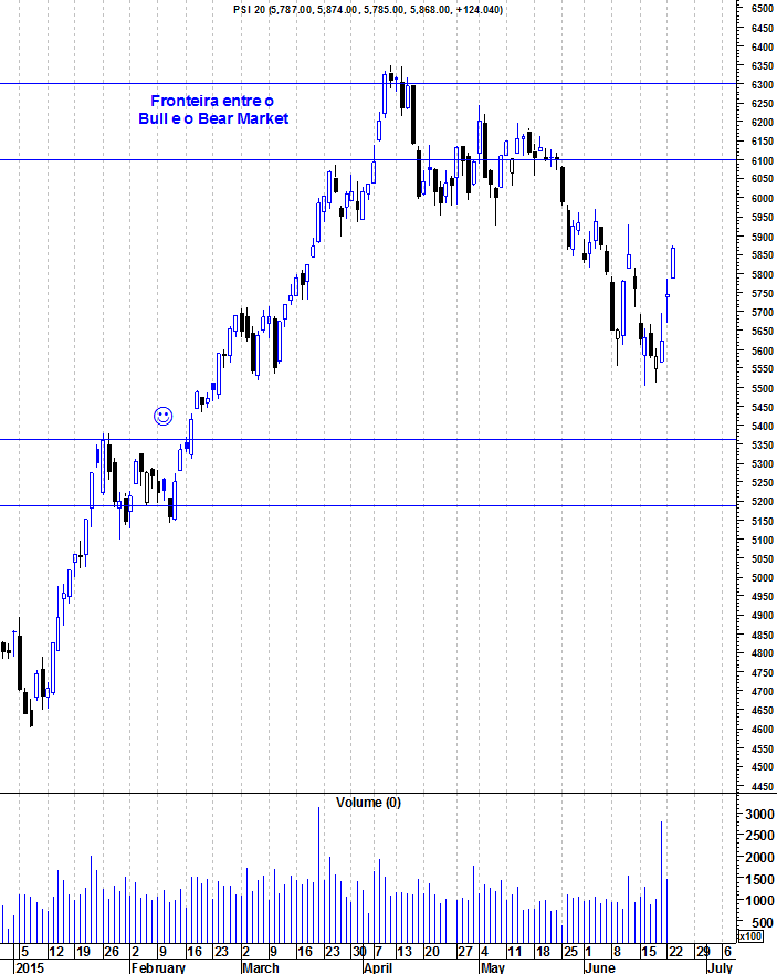 A Bolsa portuguesa leva mais de 2 meses de quedas, travando o entusiasmo que se viveu no primeiro trimestre deste ano. Não posso dizer que seja surpreendente. Há alguns meses que me referia à zona entre os 6100 e os 6300 pontos do PSI como a grande fronteira entre o “Bear” e o “Bull Market” e, apesar das críticas sobre esse meu excessivo conservadorismo, sempre mantive essa posição pela importância dessa resistência que acabou por travar esse ressalto da Bolsa portuguesa nos primeiros meses deste ano.