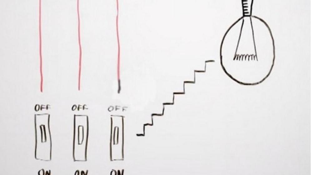Era uma vez uma casa com dois andares. No cimo das escadas só existe uma lâmpada, controlada por um dos três interruptores – A, B e C – presente no rés-do-chão. Não sabemos qual deles pode acender a lâmpada e só podemos subir as escadas uma vez para descobrir. Como o podemos fazer?