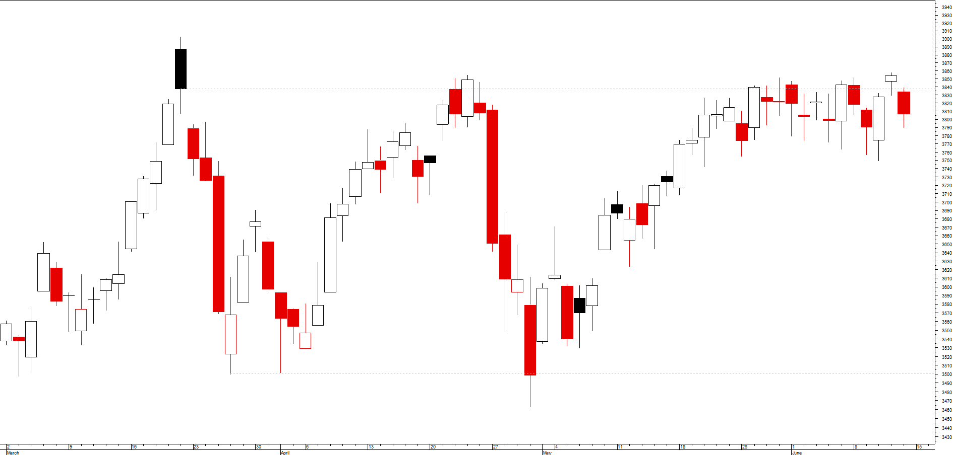 Pois, é como a cotação está nas centenas parece muito, mas a % é pequena, mas em caso de entrada o stop seria apertadinho e acima da vela vermelha do próprio dia