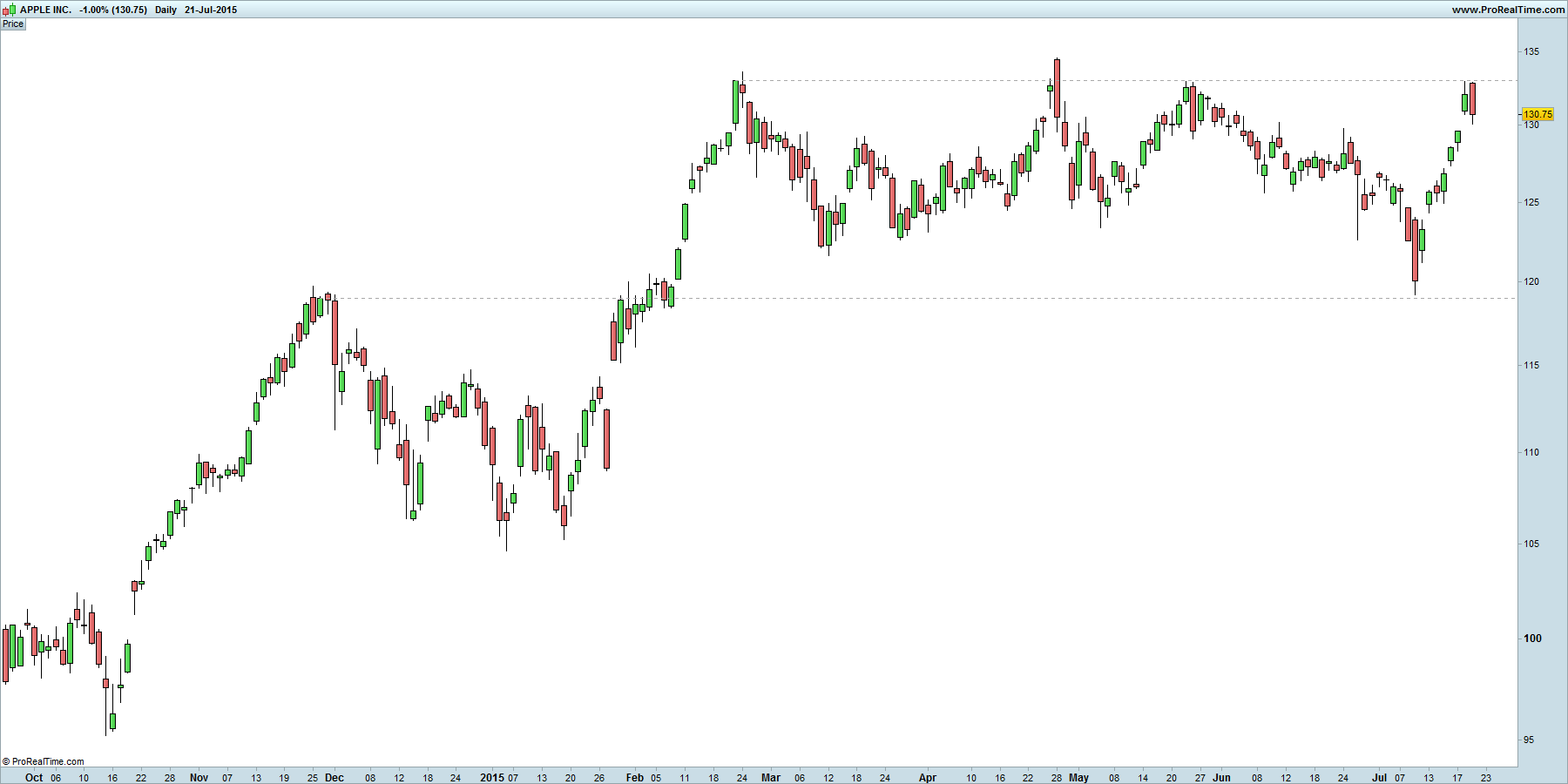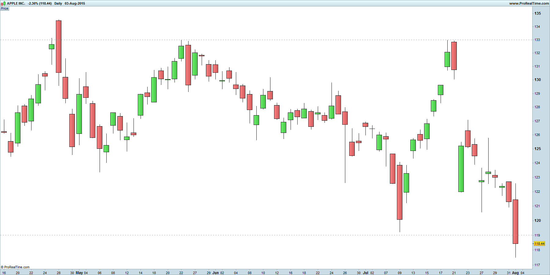 não deixa de ser curioso constatar que nos últimos 3 topos da apple o preço desenhou um padrão de inversão, primeiro em abril, depois em maio e por fim em julho; o padrão é um bearish engulfing
