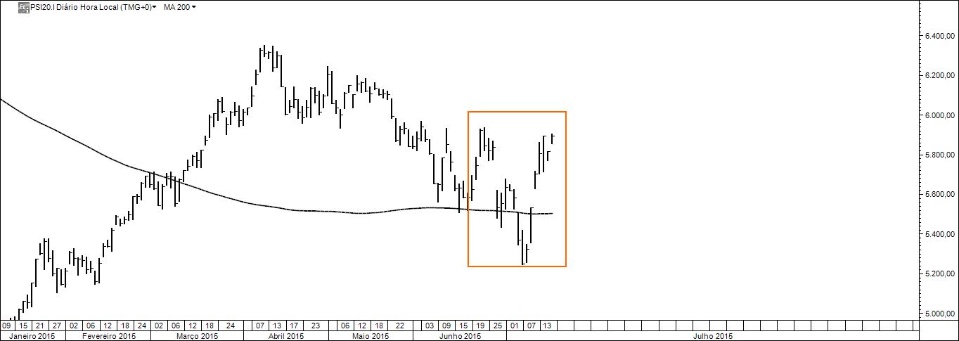 Após o fecho do mercado o gráfico diário permite ver a "penetração darvista".