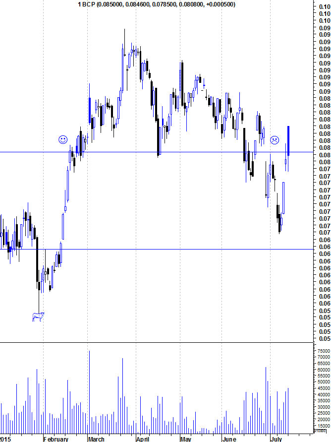 A partir de que valor o BCP deixa de vez este canal descendente e entra no "modo bull" ? 0,0850?