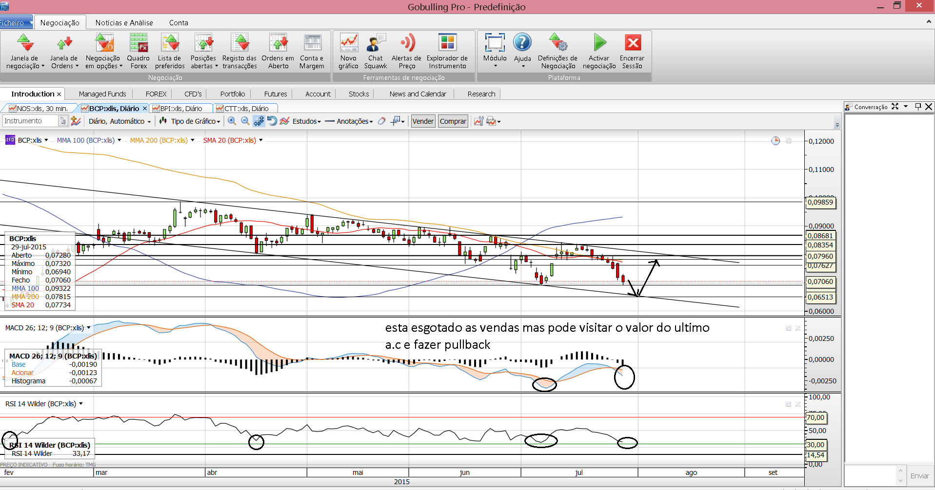 hoje foi o nono dia de quedas, o rsi está em baixo, espero que o bpi traga um efeito positivo à banca do psi.