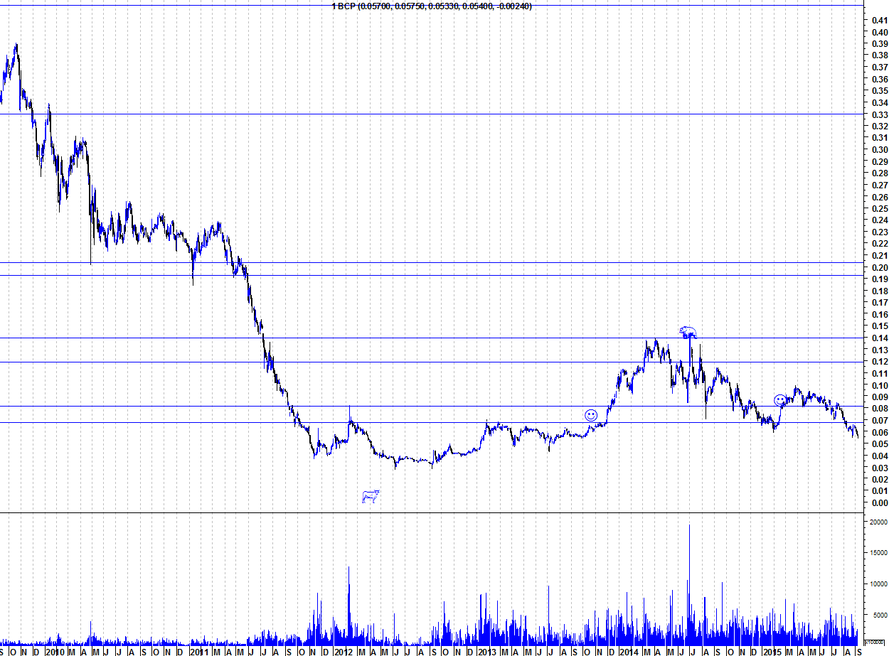 Em 30/08/2014, o BCP tinha fechado a 0,1035: