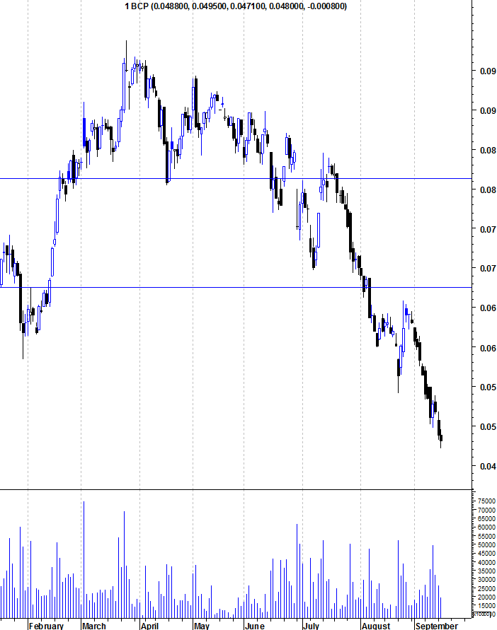 Mais a segunda opção pressionará o título, que as restantes, embora as três juntas, confiram aos curtos o cenário perfeito para a cotação do bcp mergulhar até aos € 0,04.
