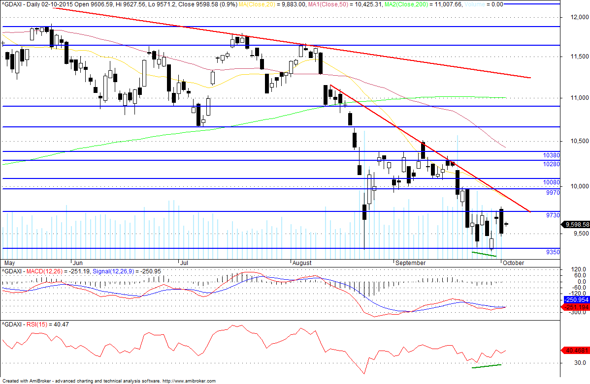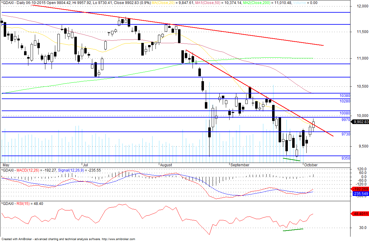 Fez uma vela bué feia...desconfio que vem testar o gap nos 9650, antes de fazer novos máximos. Os gráficos dirão nos próximos dias, no concerne a direcção de MM's. Por enquanto tudo na mesma