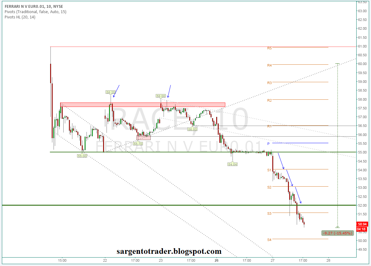 Ferrari (RACE) o preço já esta abaixo dos 52 dólares (IPO)!