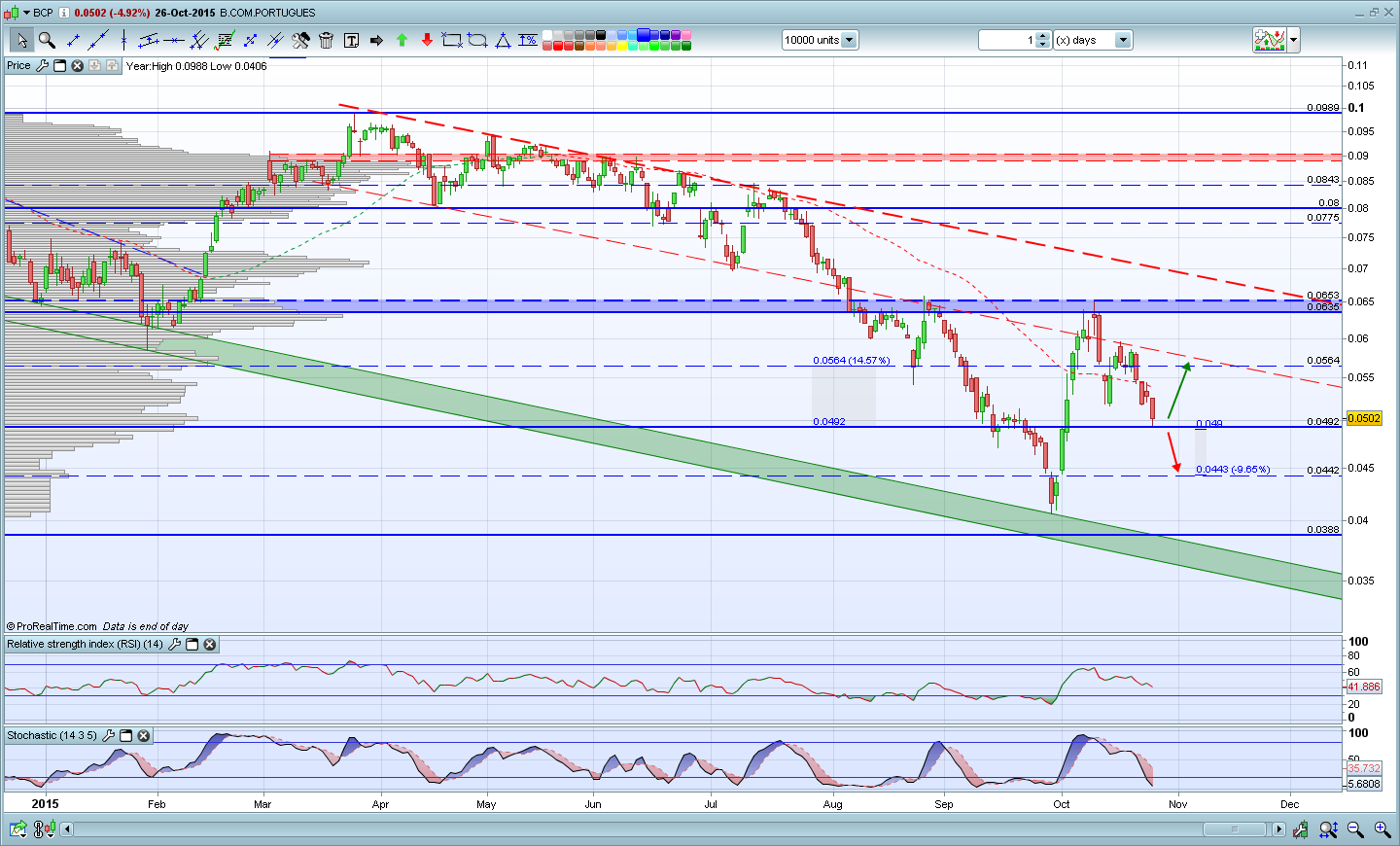 Não concordo nada contigo neste ponto e o BCP é um bom exemplo, mas não faltam muitos outros, nem é preciso sair de Portugal. O problema é que tu estás a ver a AT como algo que te devia dizer como é que um título vai evoluir amanhã ou depois, ou nos próximos meses. Procurar isso na AT ou noutro qualquer método de análise é tempo perdido. O que a AT nos dá é um conjunto de dados extremamente importantes que nos permitem posicionar-nos desta ou daquela forma num título, sendo que muitas vezes o posicionamento é um "não posicionamento", ou seja, os sinais técnicos dizem-nos que devemos ficar de fora de um título, como tem sido o caso do BCP, desde há uns anos para cá apenas em alguns períodos relativamente curtos não negociou numa clara tendência de queda.