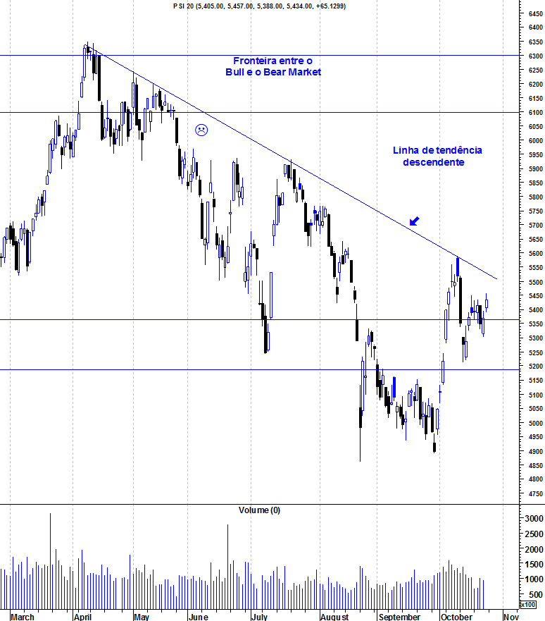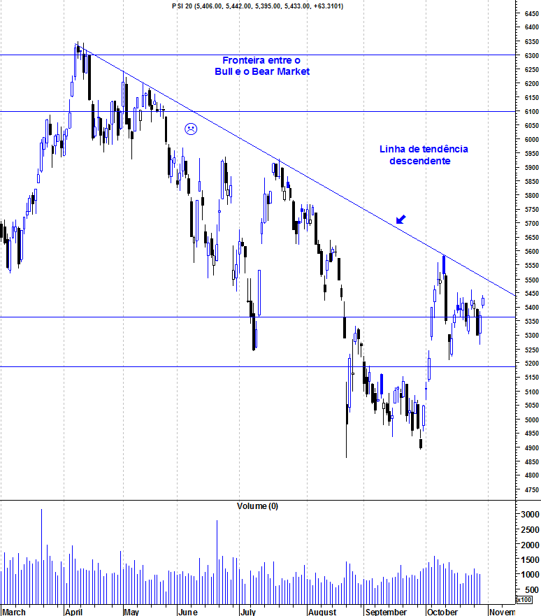 o psi também está no momento chave pois ameaça novamente um lower high. os 5200 deverão ser decisivos e a sua quebra deverá ser para levar o psi aos minimos do ano.