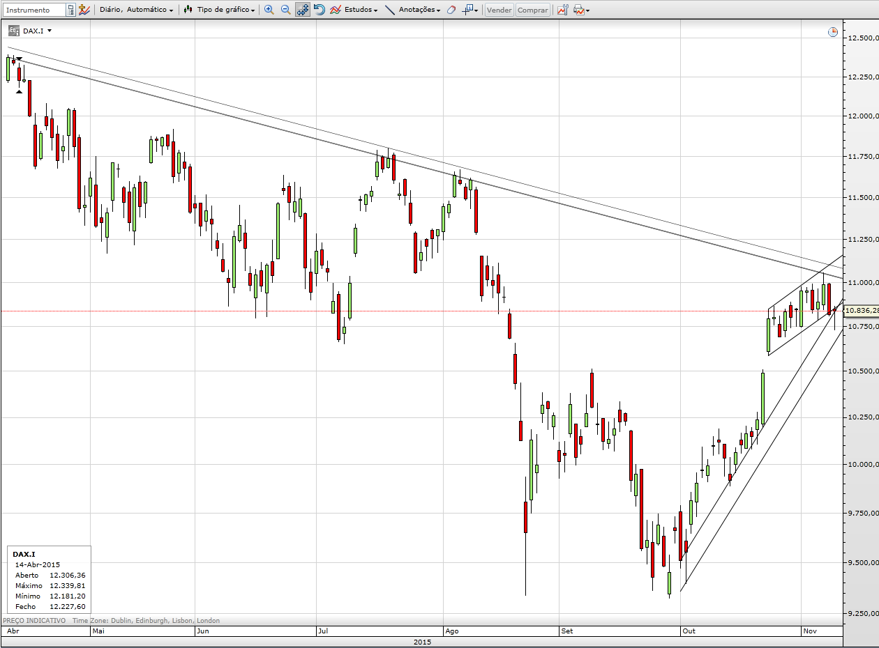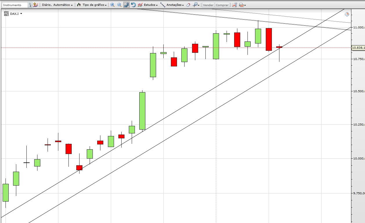 Enquanto o DAX não passar o topo da wedge 11040 pts é um movimento normal.