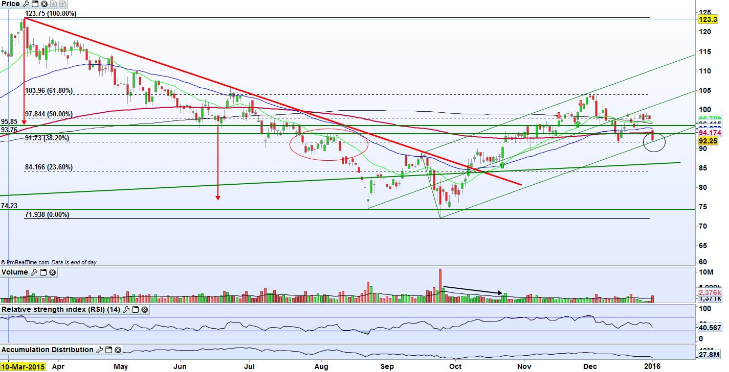Vigiar rompimento da zona 91-94; quanto mais consolidar, mas força terá para furar os 97... vermos se isto continua....