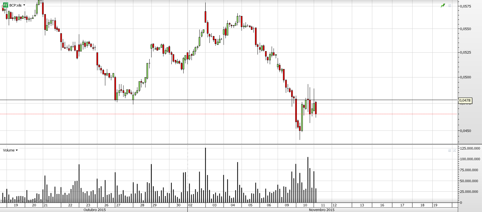 Se for um dia "clássico" à BCP ainda vai bater perto do máximo do dia ou até passar ligeiramente (0,0489)