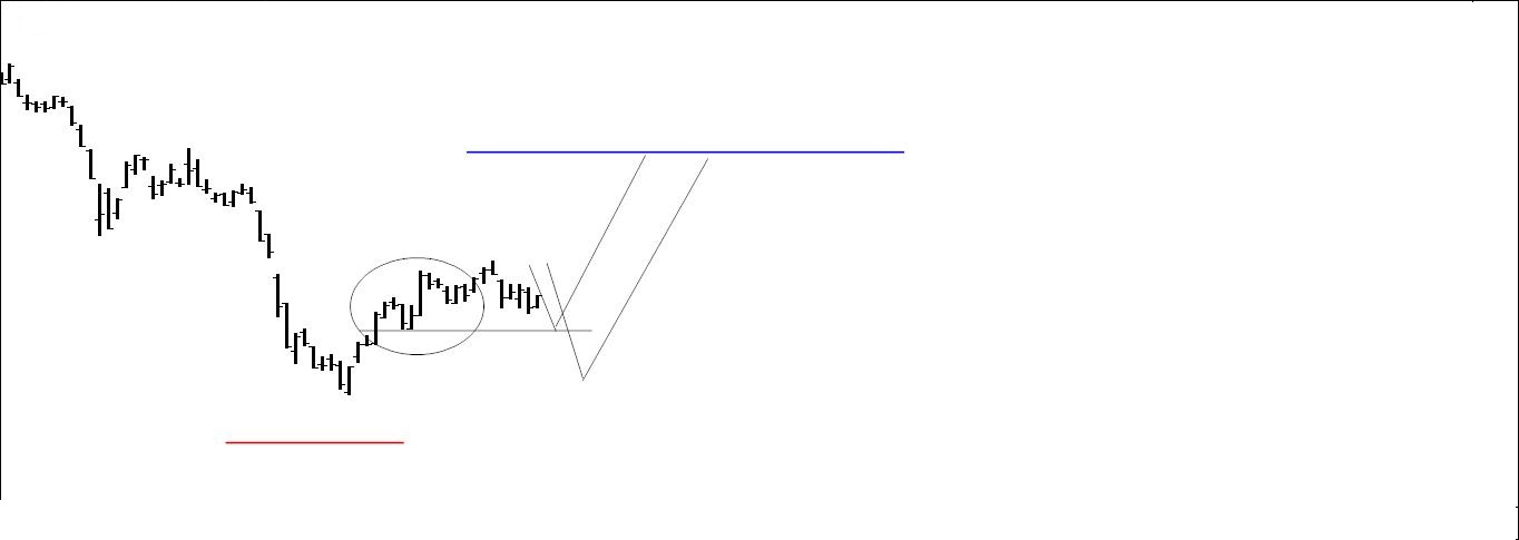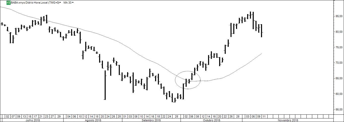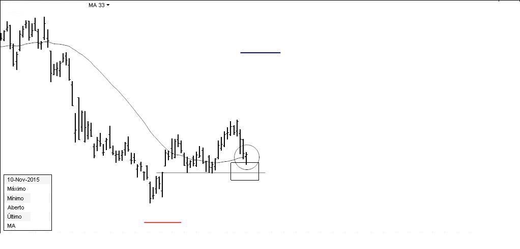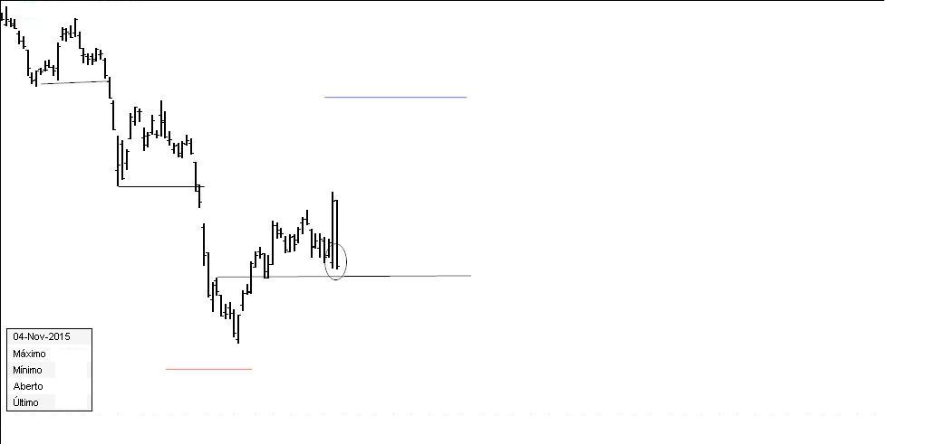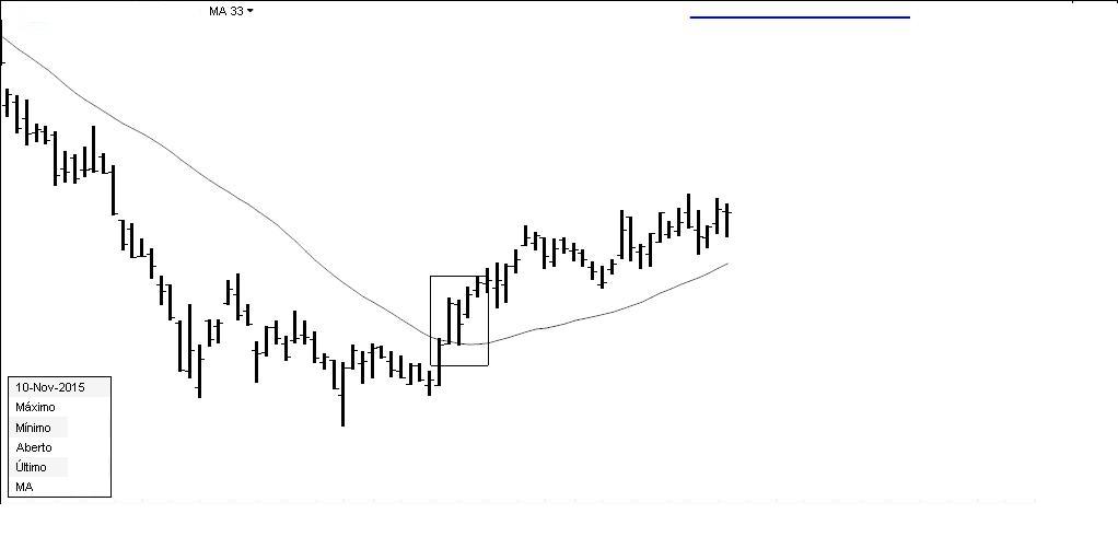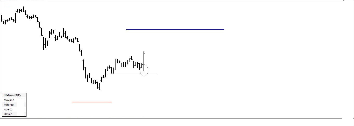 Gráfico 1: tendo penetrado na zona de interesse, foi activada a ordem de compra.
