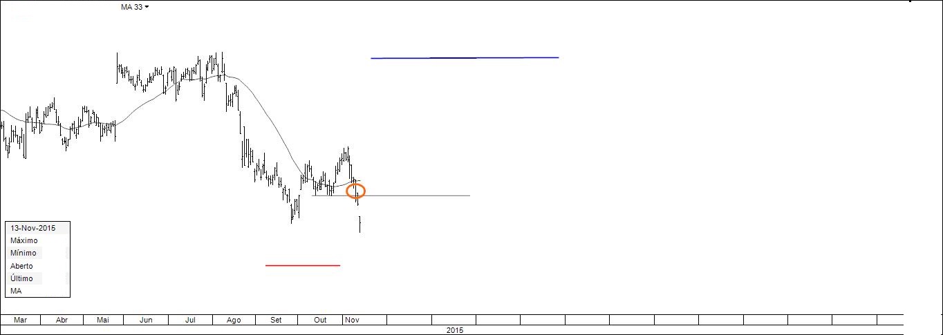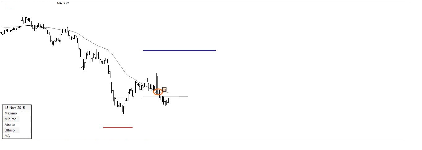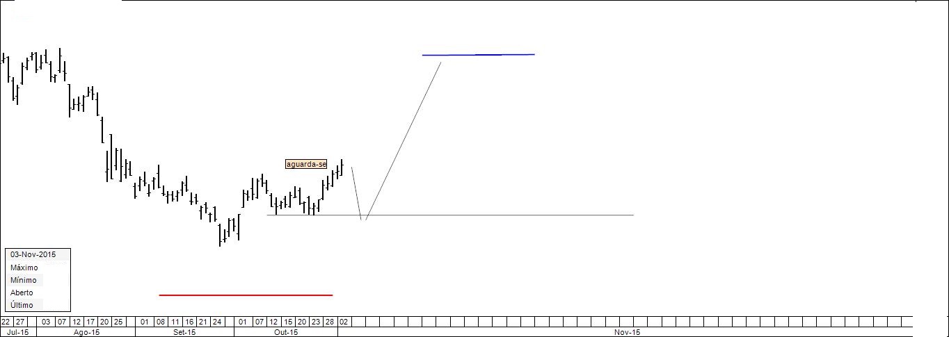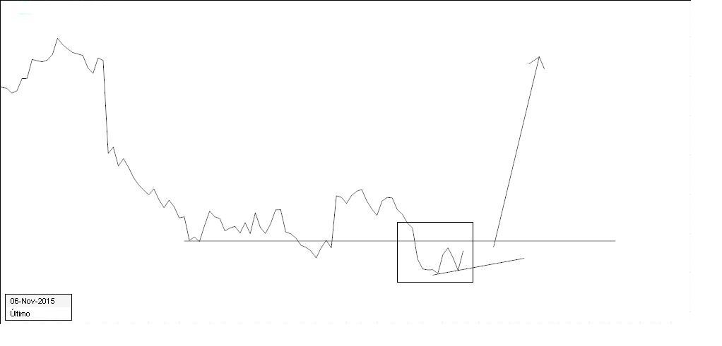 Em Agosto começaram os preparativos. Em Setembro começou o rally. Por coincidência e sorte, a ordem de compra foi então executada. O target é o cumprimento do objectivo do FI Alquimia 2015. Gráfico 1: mostrando o preço a pulverizar resistências. O rally é assim e está passando à porta do FIA 2015.