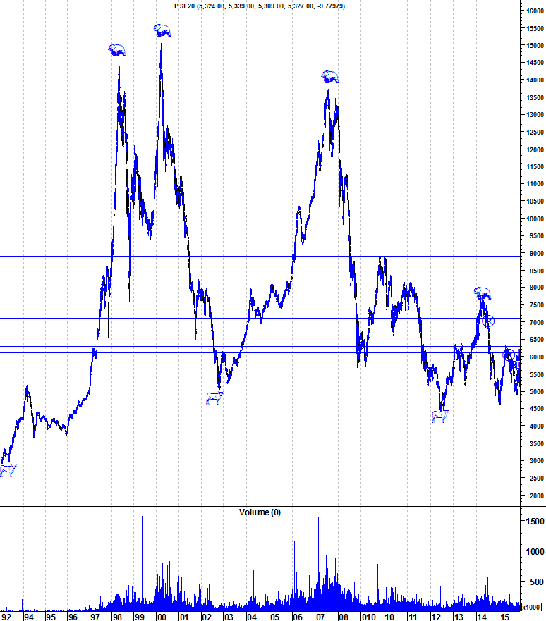 No longo prazo, continuo a manter a minha velha ideia de que a fronteira entre o "Bear" e o "Bull Market" se encontra nos 6300 pontos.