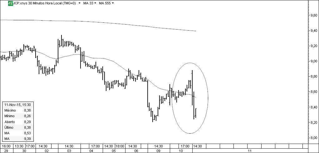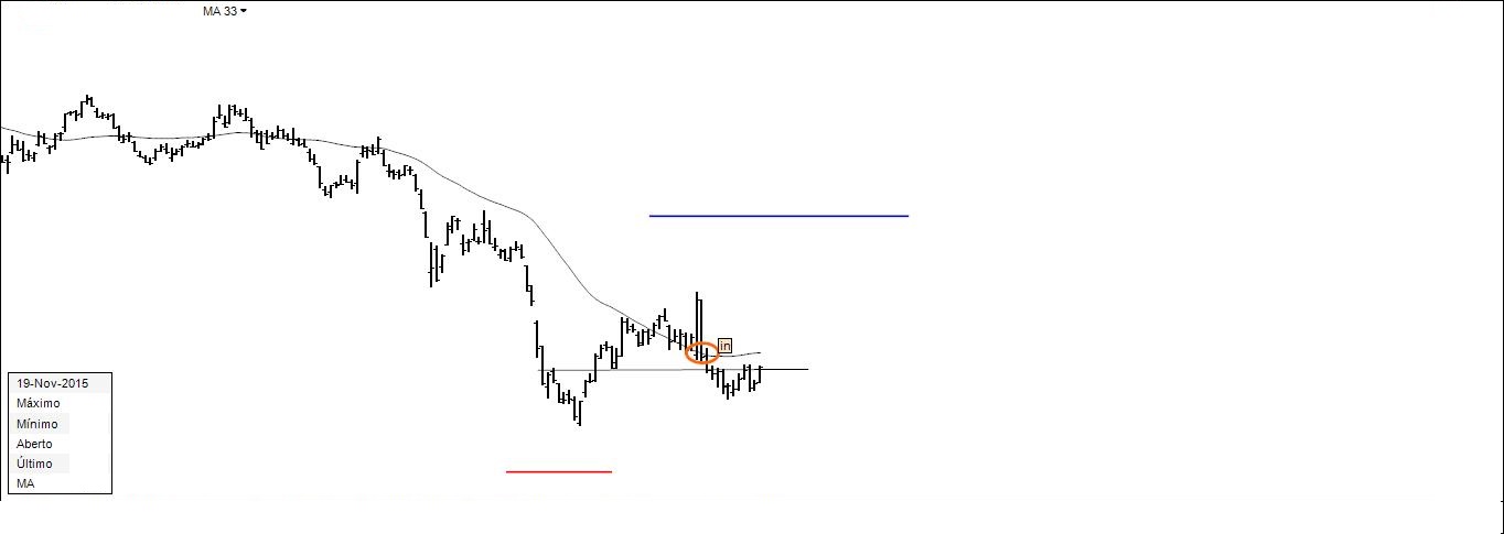 Gráfico 1: tendo penetrado na zona de interesse, foi activada a ordem de compra.