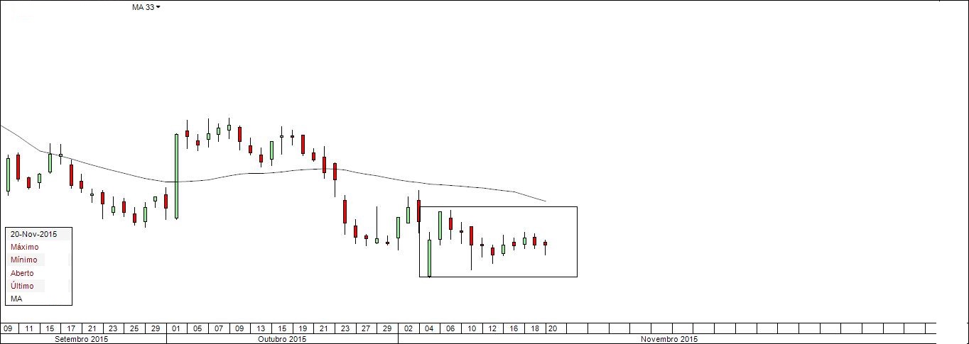Em Agosto começaram os preparativos. Em Setembro começou o rally. Por coincidência e sorte, a ordem de compra foi então executada. O target é o cumprimento do objectivo do FI Alquimia 2015. Gráfico 1: mostrando o preço a pulverizar resistências. O rally é assim e está passando à porta do FIA 2015.
