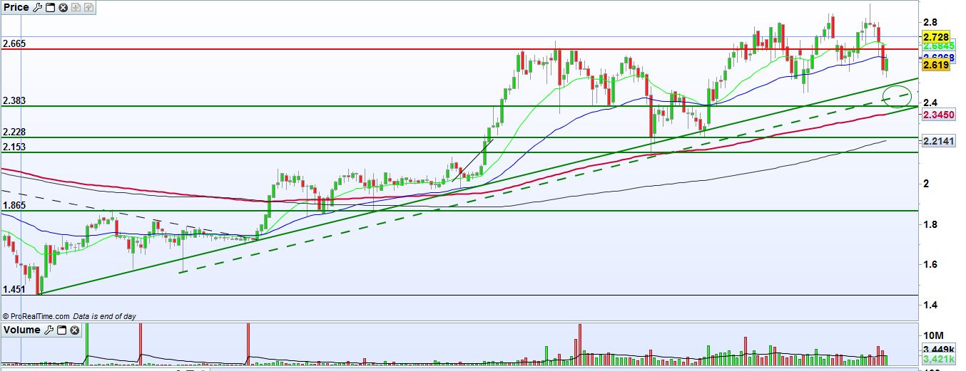 Não hesitarei em fechar a posição se não houver fechos consistentes acima de 2,65 nos próximos 5 dias.