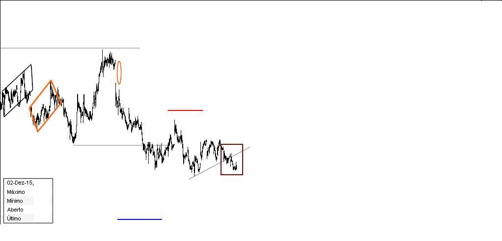 após os 2 últimos negócios que aqui postei, curto no usd/jpy e longo no eur/usd, em relação aos quais detectei erros na sua definição, por ex. no caso do usd/jpy, no qual shortei uma intersecção de linhas mas cuja stop -loss tinha em vista um gap que ficava bastante acima dessa intersecção, decidi fazer uma pausa, e voltei com esta entrada curta num câmbio. a stop está próxima (protegida pelo alfinete), as linhas pareceram-me aprazíveis, o target ainda não está definido, embora esteja de olho na lmlh da fork descendente - pela quantidade de toques, parece-me significativa.
