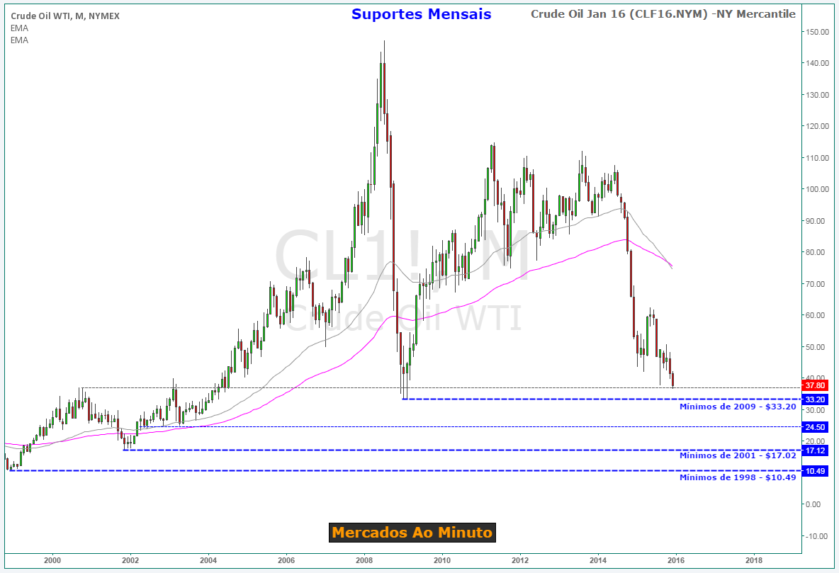 O WTI DESCE 6% para 37.56 USD estabelecendo novo minimo dos ultimos anos .