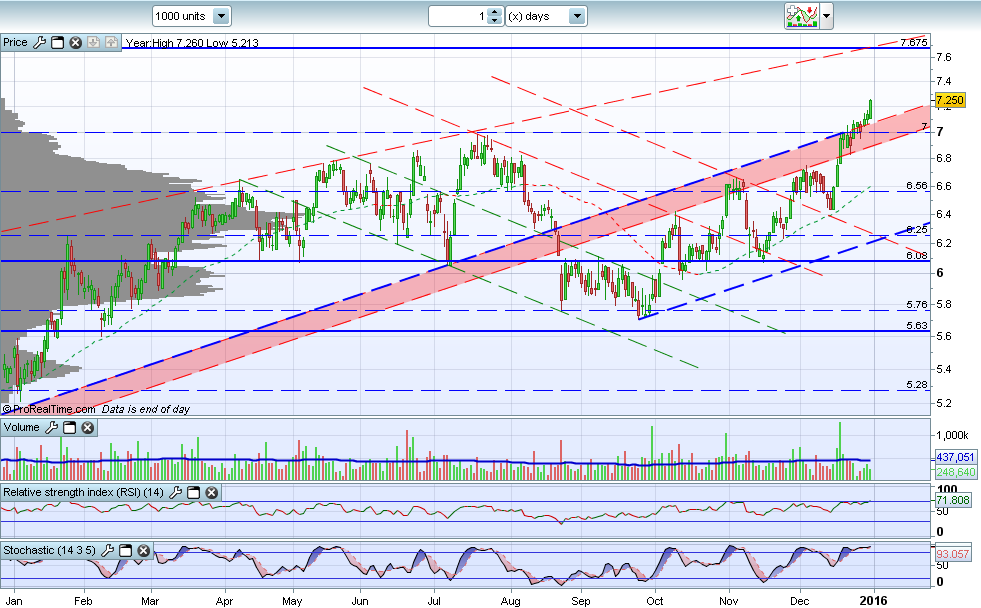 Os indicadores estão um pouco sobre-comprados mas acho bastante provável que visite os 7,6x nos próximos dias/semanas.