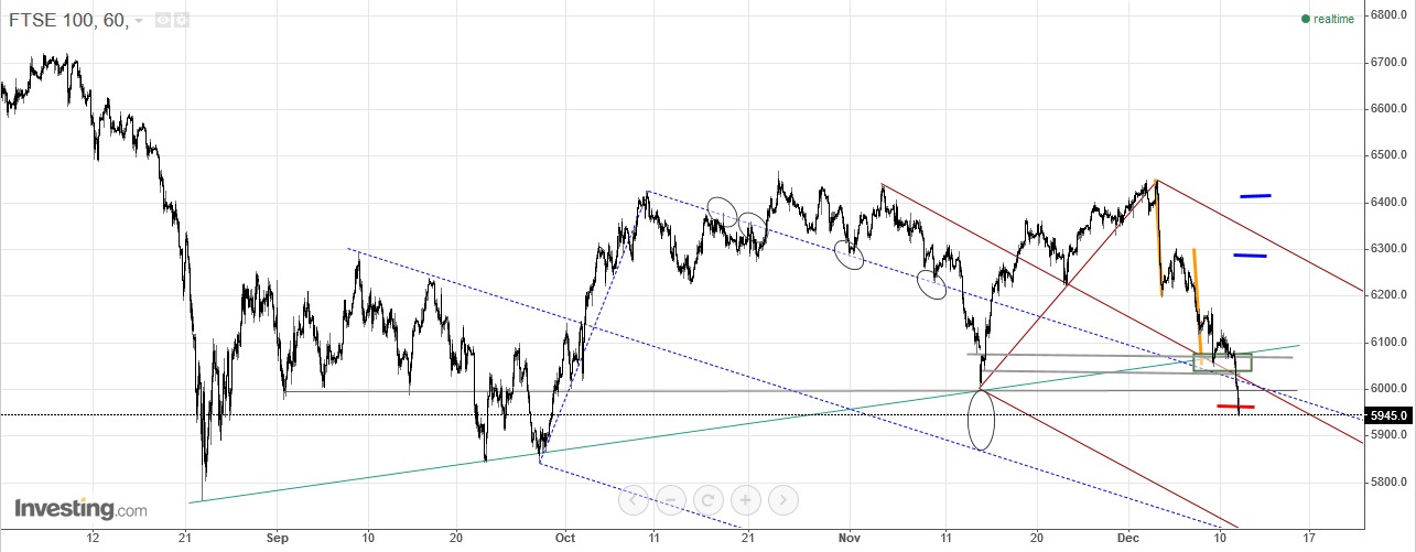 gráfico 2 - posição fechada cerca de 15 pts abaixo da stop-loss inicialmente definida. após 2 pequenas reacções do preço nos 5950 (apenas visíveis nos 5 min) tinha decidido manter mais um pouco a posição mas neste momento nada me diz que o preço possa inverter (activo ftse100).
