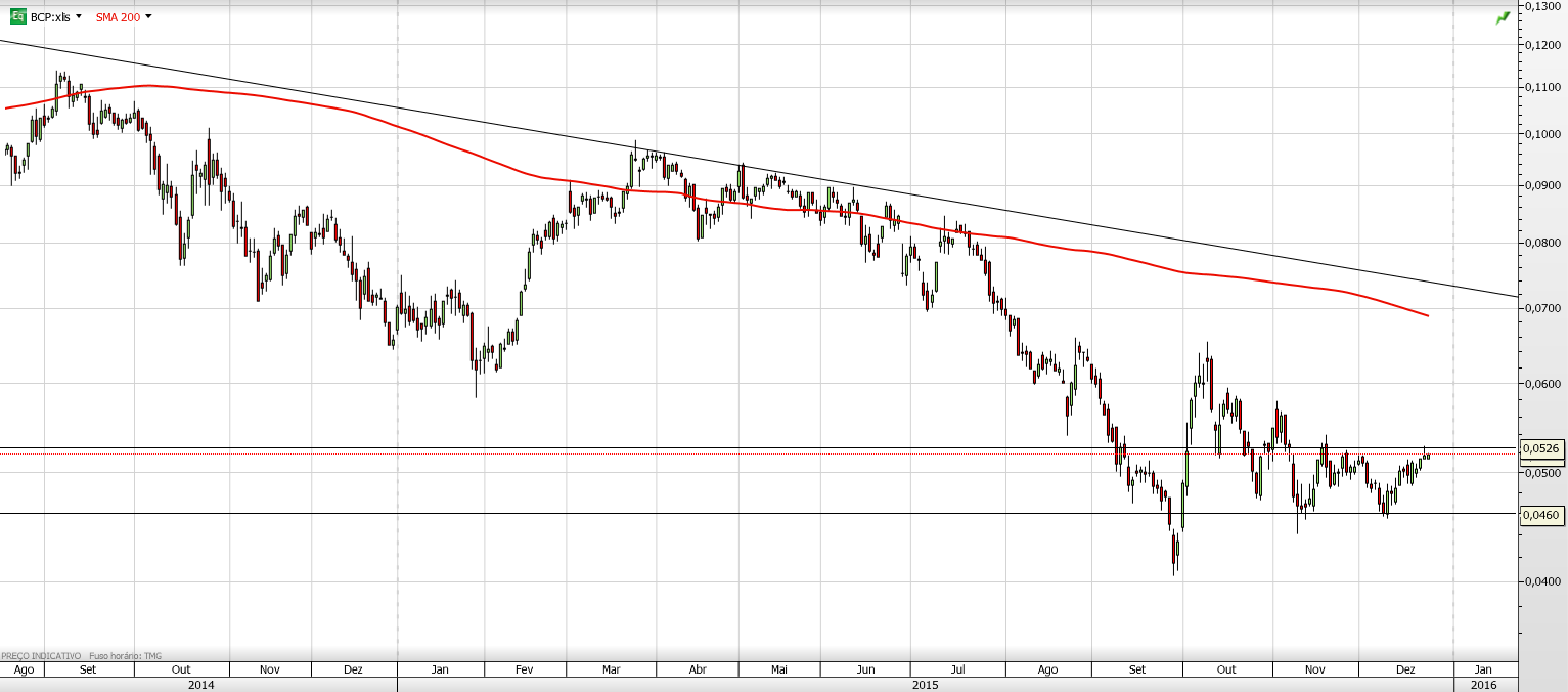 Quando entrei longo, pensei que não pudesse baixar mais. E entrei, obviamente, acreditando na sua valorização. Até ver, foi no melhor momento que poderia ter entrado. Entretanto subiu e já desceu. Mesmo assim estou com mais valias de 18%. Isso não influencia em nada ao fazer a minha análise sobre o BCP. Não tenho qualquer influência no mercado, então analiso tal e qual como ela é. Como é óbvio, espero que valorize, no entanto, os cenários não me fazem, para já, acreditar nisso.