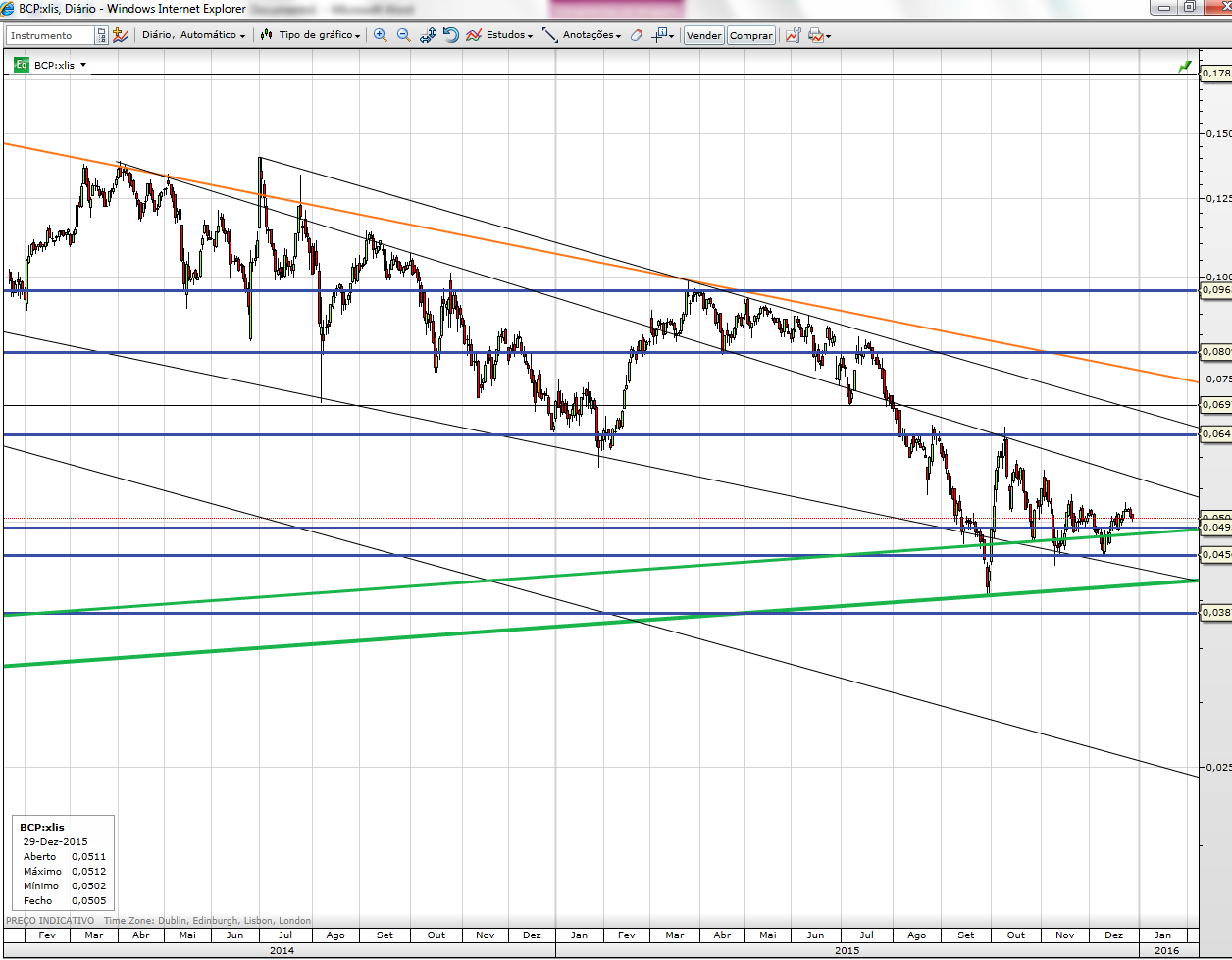 coloco aqui o grafico sem os Acs incorporados do BCP em bull onde mais do que quadriplicou entre final de 2013 e a queda do imperio BES em março de 2014.