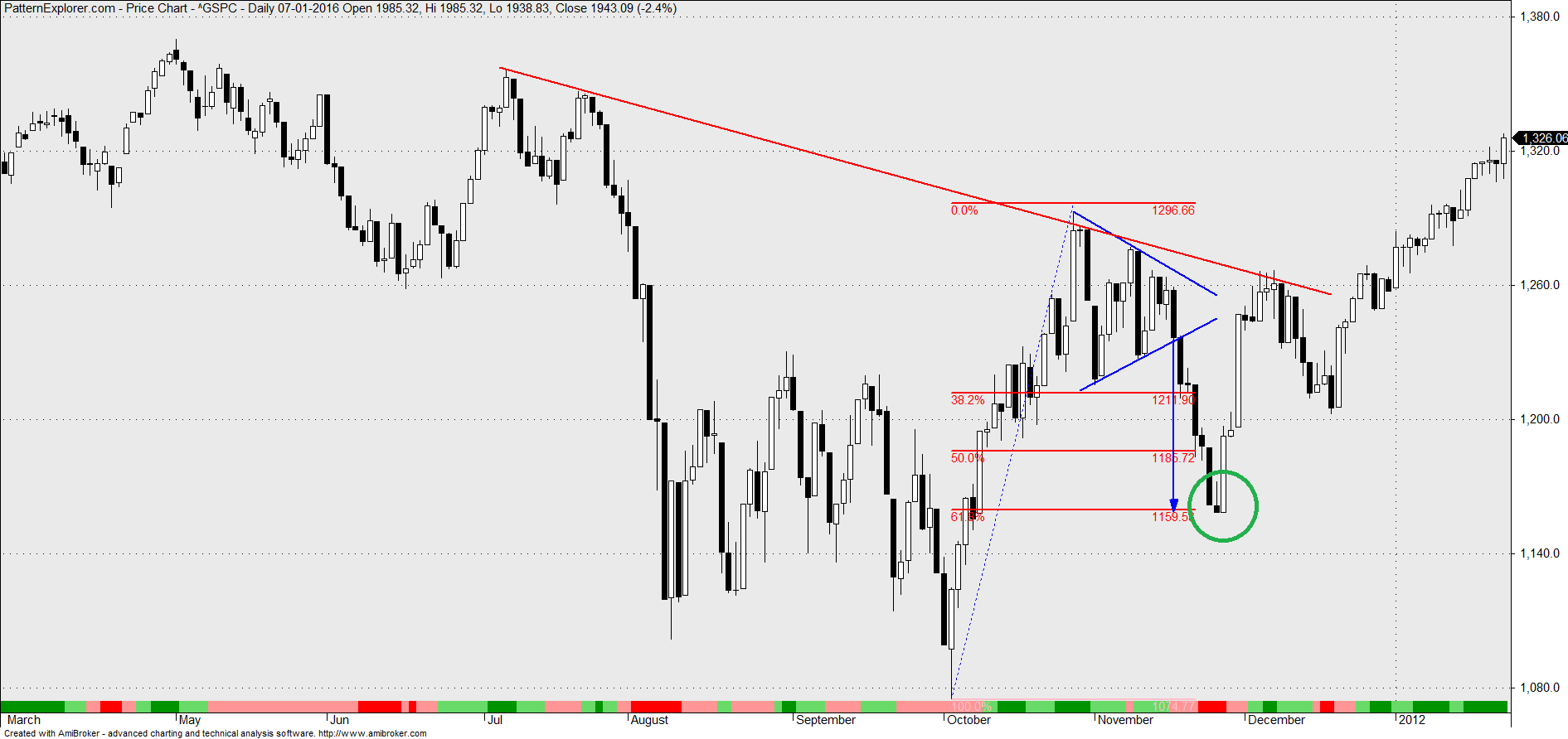 * preço numa zona próxima de suporte, a qual coincide com os 161% da fibo numa projeção menor,