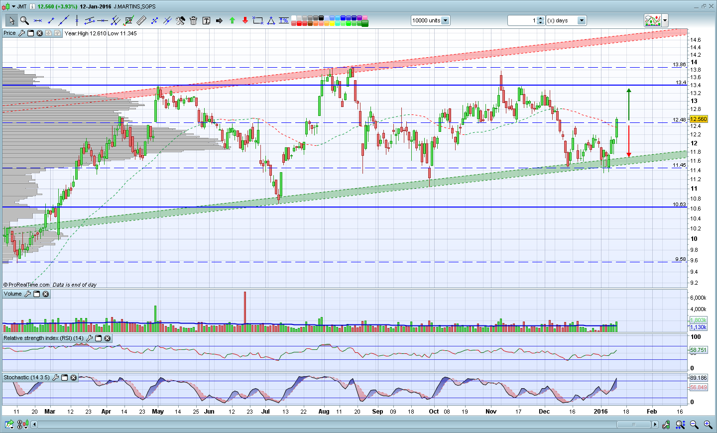 A minha interpretação do gráfico deste titulo leva-me a olhar atentamente para uma possível oportunidade de compra, isto é, caso esta zona dos 11,50 / 11.40 não seja quebrada em baixa, julgo que é um bom momento de compra, podendo leva-lo a médio prazo acima dos 14€, caso contrário, diria que a zona dos 10,60 / 10,50 será o próximo suporte, ou quem sabe, fechar os dois gaps ainda em aberto(Jan13 e 16, 2015), algures entre os 9.03 e os 8,525.