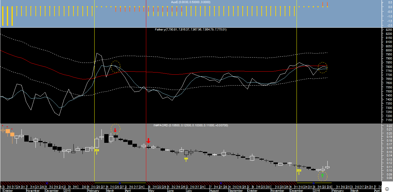 Estará hoje a dar um surpreendente sinal de fecho de posiçoes curtas no gráfico diário, embora mantenha posiçoes descendentes negativas na escala semanal, pelo que o diagnóstico do sistema de trading é o de continuar de fora do papel.