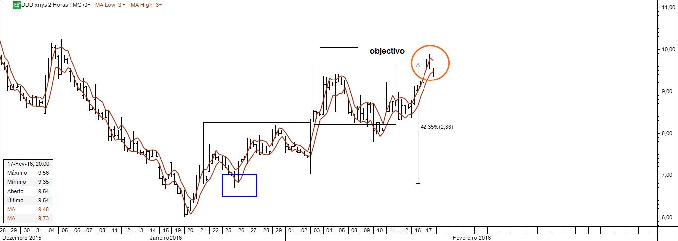 O Alquimista Escreveu:Uma oportunidade de investimento baseada na técnica aqui mencionada várias vezes: sma 3 low X sma 3 high x caixa de Darvas. Compra na caixa com target e stop loss assinalados. Negócio a realizar à margem do FIA 2016.