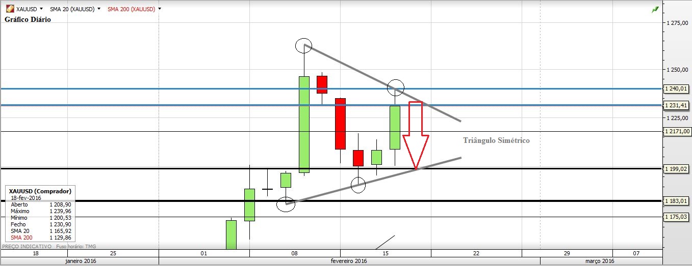 Deixo aqui a minha ideia para o Ouro. Para já descarto a hipótese de o Preço ir testar a M200 e/ou a Wedge, acho que o Ouro vai corrigir um pouco mas apenas até à zona dos 1200/1180 para depois retomar as subidas fortes.