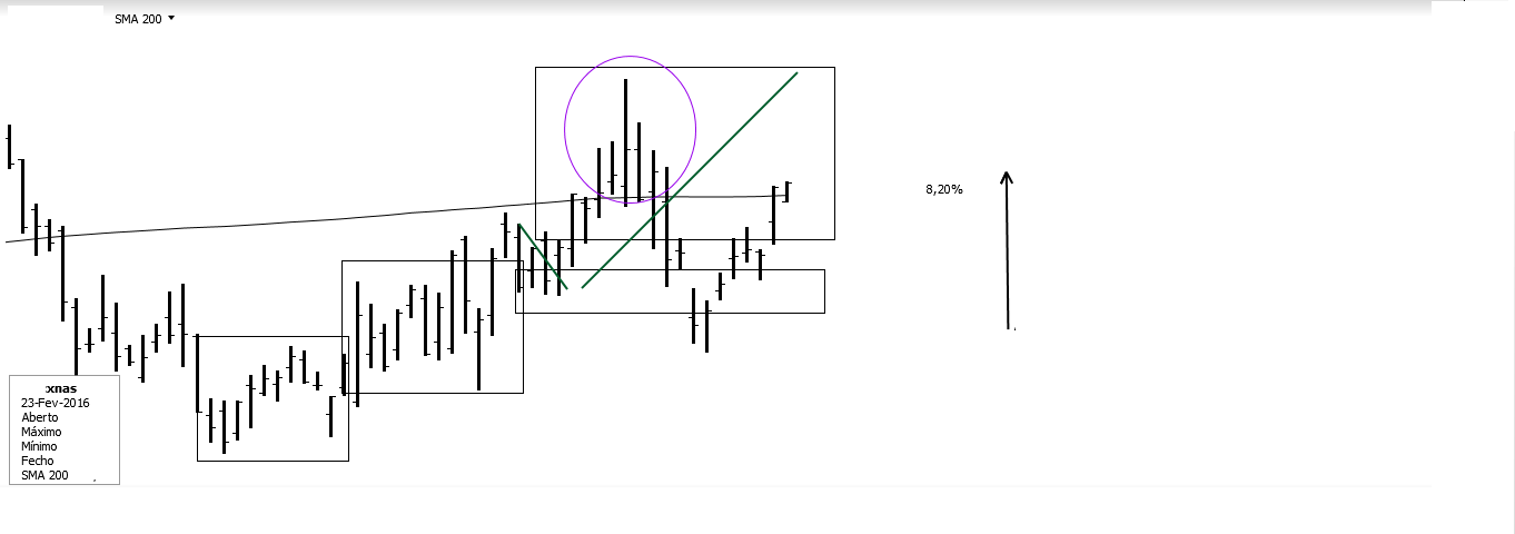 O Alquimista Escreveu:Uma oportunidade de investimento baseada na técnica aqui mencionada várias vezes: sma 3 low X sma 3 high x caixa de Darvas. Compra na caixa com target e stop loss assinalados. Negócio a realizar à margem do FIA 2016.