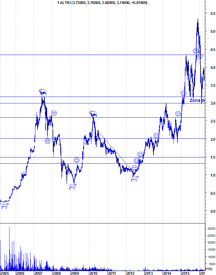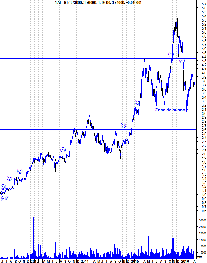 Quando a Altri atingiu o auge e superou os 5€, a seguir foi tomada pelos ursos, perdeu quase 50% do seu valor em mercado em dois meses e veio aos 3€.