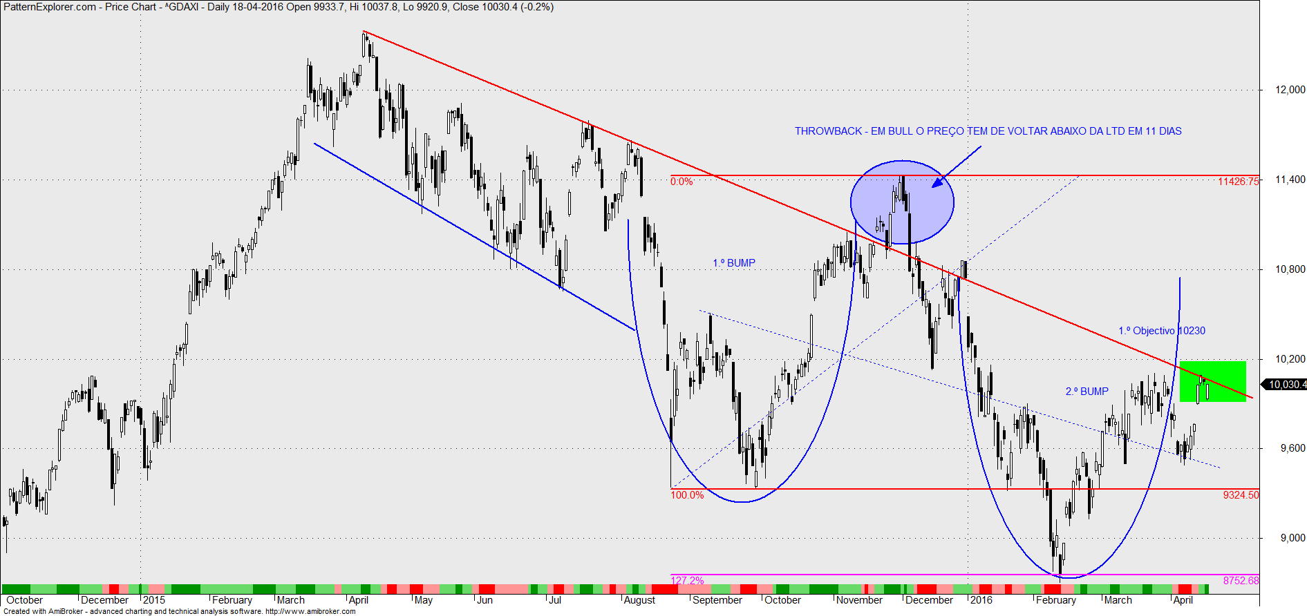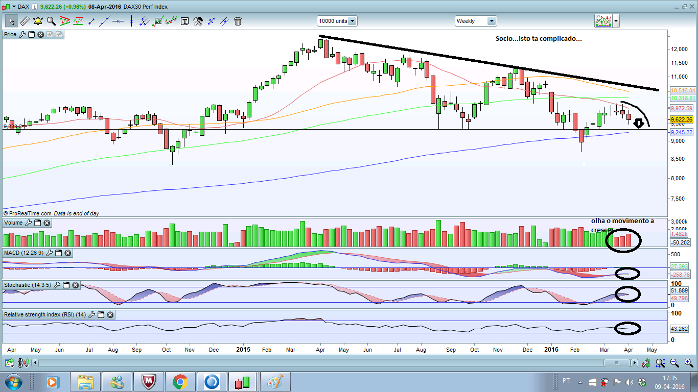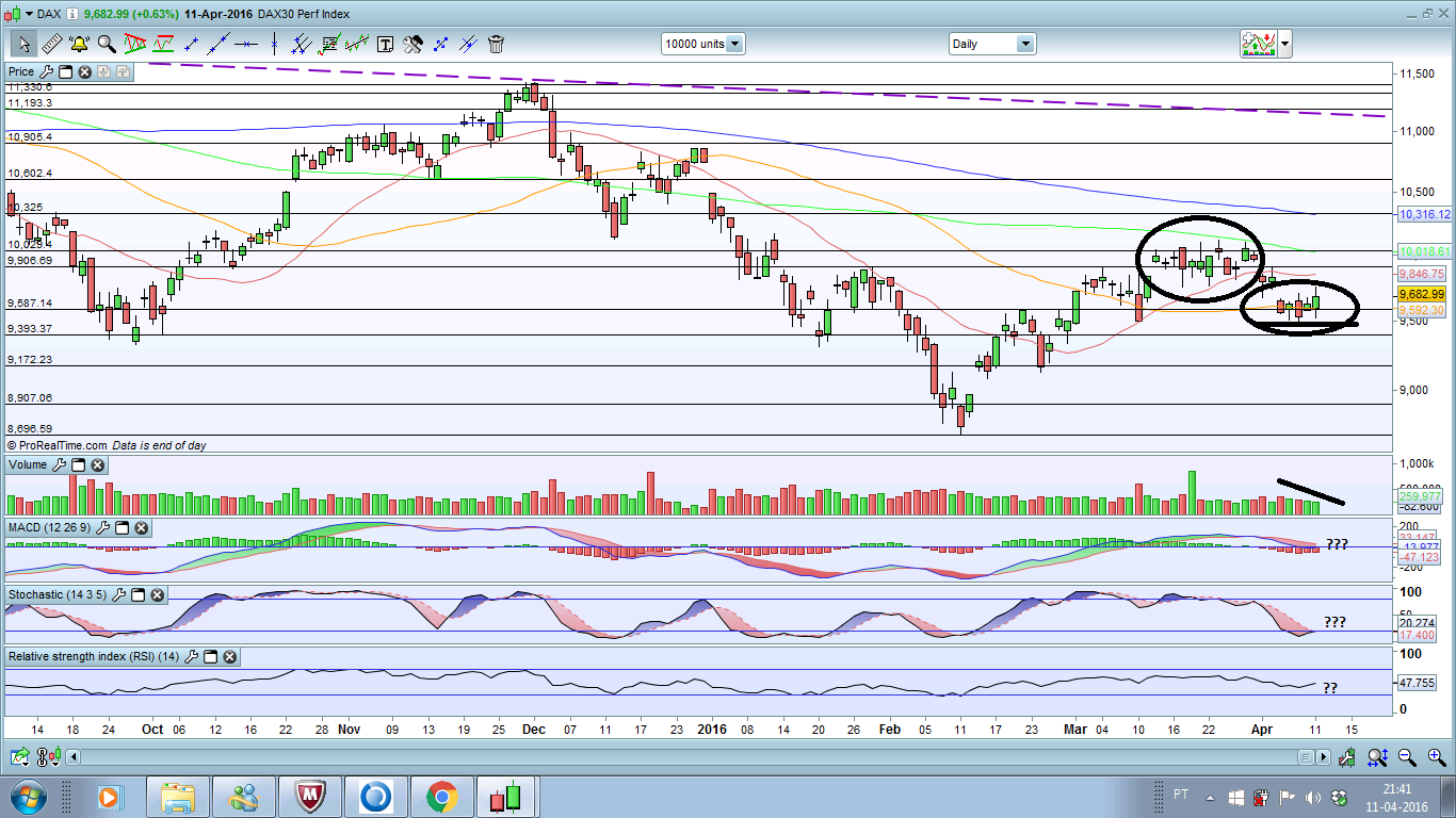 Sinceramente, não consigo "visualizar o DAX: com uma ilha abandonada cá em baixo, com gaps up e outros down, como o de hoje, não vejo figura nenhuma na AT do DAX nem orientação disto...