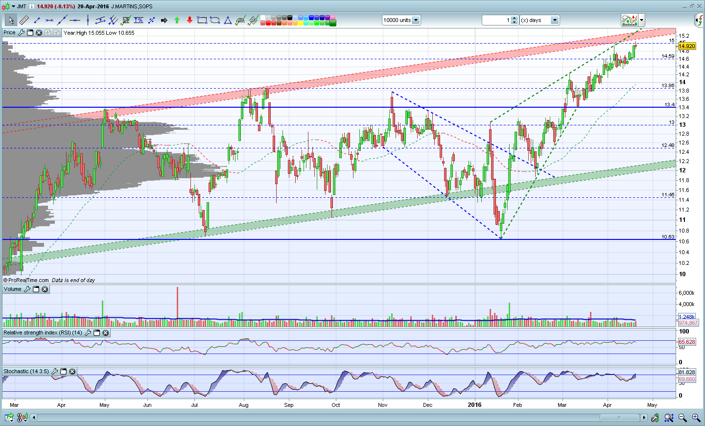 Aqui ficam os gráficos actualizados da JM que continua, tranquilamente, o seu "Bull Market".