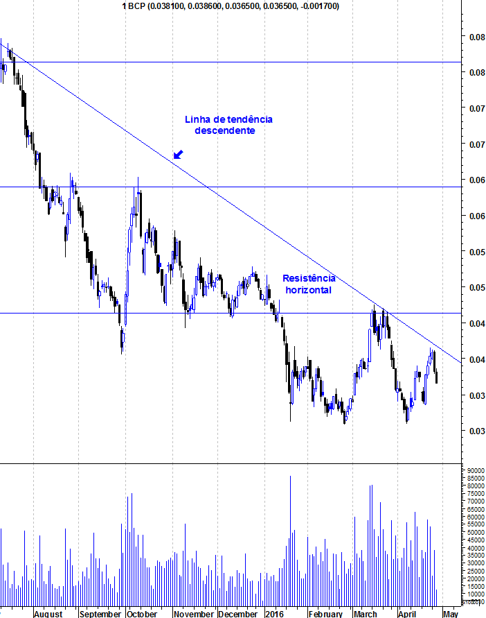 O BCP ainda vai ficar em território mais interessante porque vai baixar da barreira dos 3 cêntimos. O PSI 20 prepara-se para descer até aos 4500 pontos e o que é que vai acontecer ao BCP? O inverso? Claro que não!