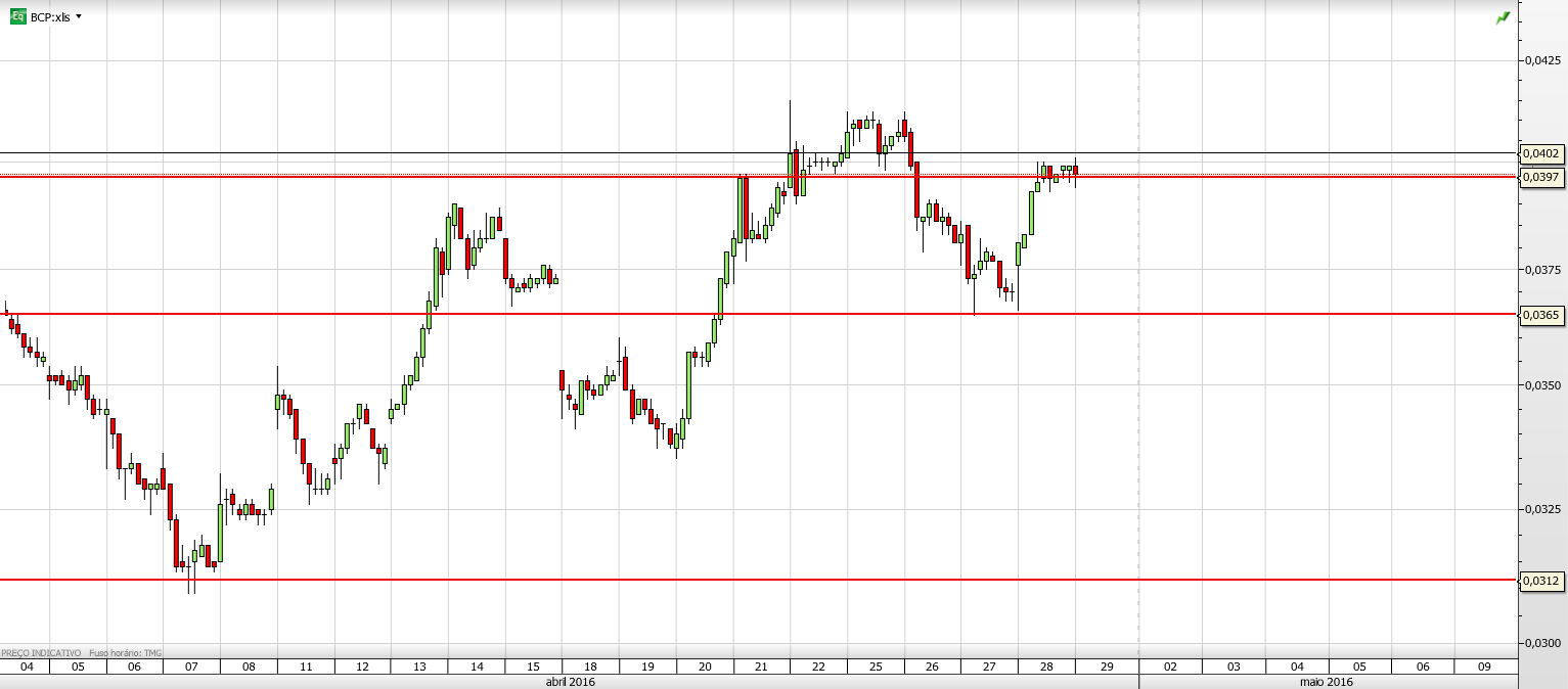 TremalNaik Escreveu:Lembram-se do Perseu e da Memória do Preço. No BCP, com resultados trimestrais medíocres, com os EUA em quebra ligeira, com os mercados europeus no vermelho e com tomada de mais valias no virar da esquina, a memória do passado recente lembra mais uma queda vertiginosa. A acontecer, seria normal. O que me importa salientar no início do dia é a hipótese de não acontecer. Seria histórico.