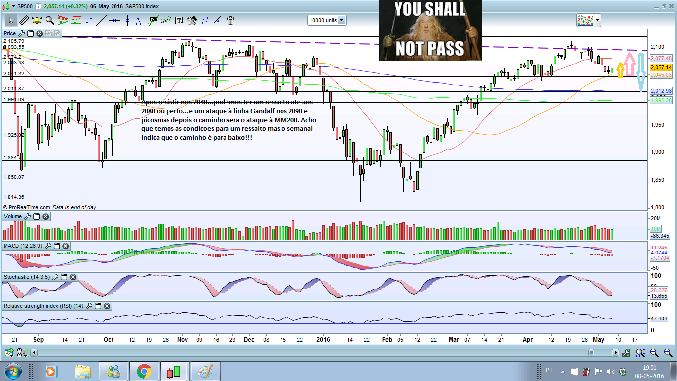 Deste modo o meu Prognóstico é uma ida à linha inferior da Wedge e/ou aos 2081 para depois o Preço ir direitinho à M50 no Semanal. É pelos valores da M50 que espero que a próxima semana acabe.