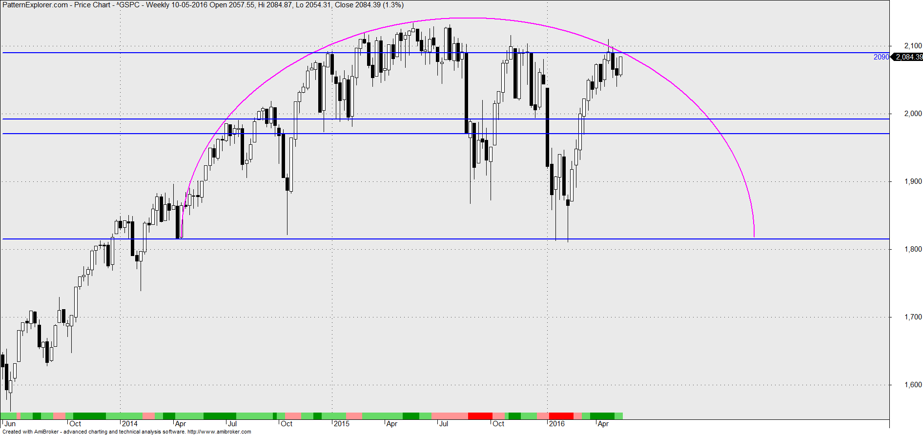 O Prognóstico saiu furado e pessoalmente estou um bocado chateado. Para anular o cenário que ontem tinha traçado só mesmo uma vela como a de hoje... a fechar uns pontos acima dos 2081,56 valor acima do qual o meu plano perde a validade. Agora o caminho está livre para uma ida ao Muro lá de cima. No semanal a vela já fez um valor mais alto que o da passada semana e um trio bonito de velas começa a desenhar-se.