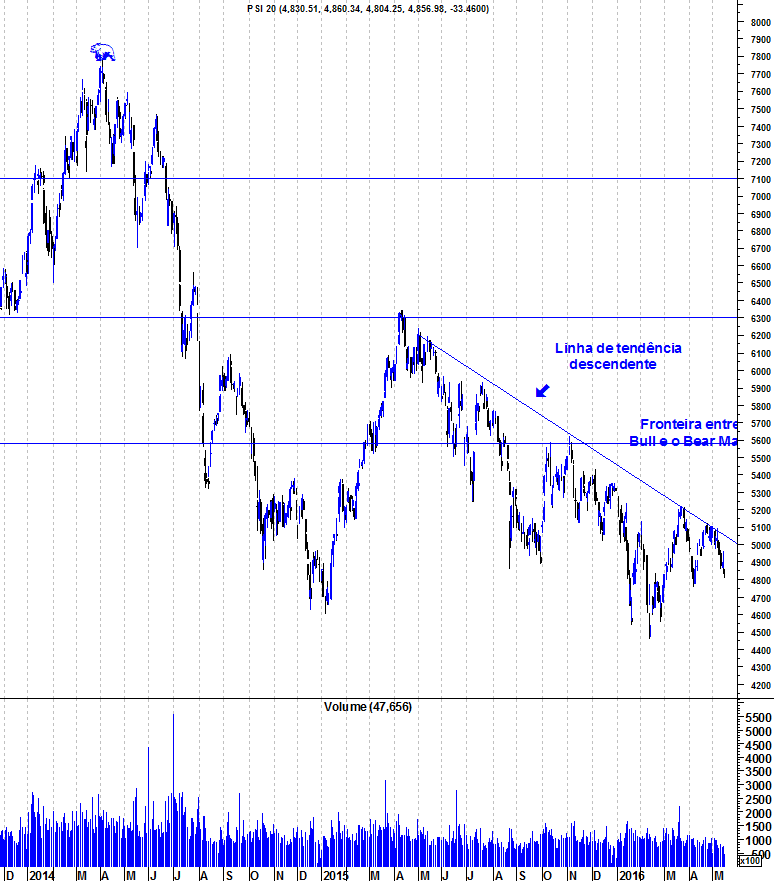 A minha fronteira entre o "Bear" e o "Bull Market" baixou dos 6.300 para os 5.600 pontos. Recordo que já foi nos 7.200 pontos e continuará a descer caso o mercado continue a cair.