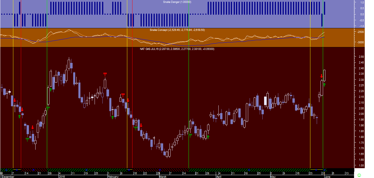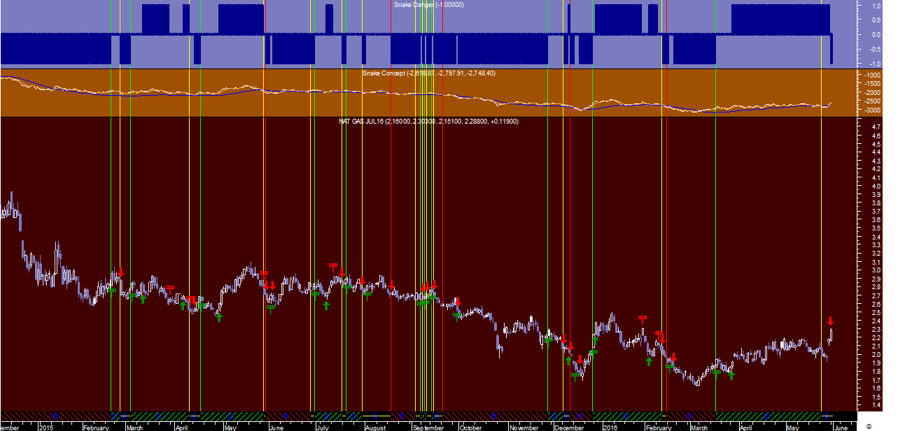 O caso do Gás Natural, como tinha previsto na 6ª feira, é um exemplo muito curioso deste sistema de trading pois apesar dos futuros do GN terem disparado hoje no final da sessão mais de 5%, o sistema “Cobra” acabou mesmo assim de assinalar um sinal de venda (!) na escala diária pelo facto de considerar no âmbito do programa que se encontra junto ao topo dum canal mais ou menos horizontal num regime de comportamento lateralizado, o que significa, face ao sinal comprado na semanal, que acabou de dar um sinal de saída para neutro nesta “commodity” energética.