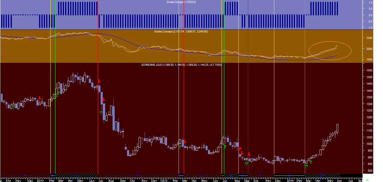 Cem pt Escreveu: Do conjunto de todas as “commodities” existentes em carteira, aquela que na minha opinião poderá conter ainda um bom potencial de valorização a curto ou médio prazo deverá ser a Soja (Soybeans) que aqui fica com os sinais do sistema da “Cobra”, quer na escala diária quer na semanal.