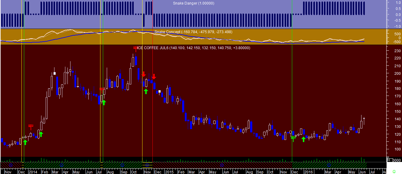 Quanto ao que se passa com as eventuais posiçoes da “Cobra” noutras "commodities" que nunca referi, pus por curiosidade o sistema a trabalhar para ver o que se passava em dois desses futuros: o Café e o Açúcar.