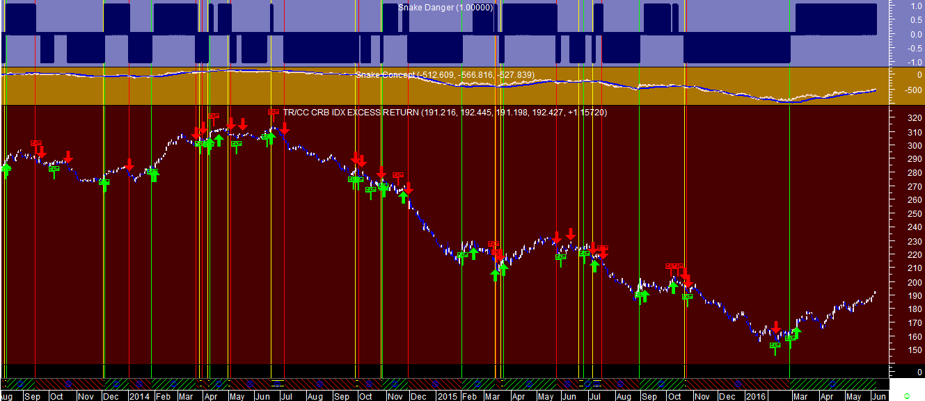 Fica um gráfico diário com os sinais do sistema no índice TRJCRB que representa a generalidade das grandes commodities a nível mundial.