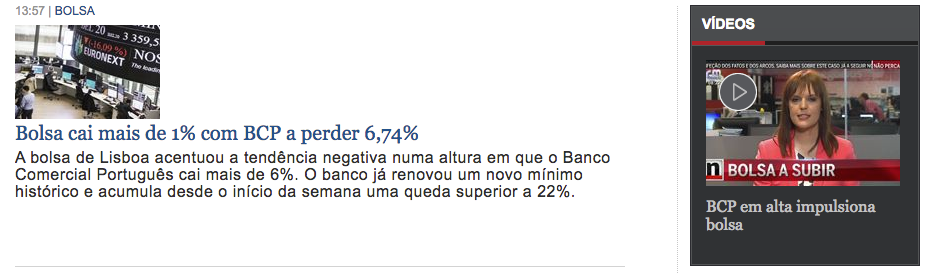 Sobre o BCP só tenho uma advertência, quem está fora, não entre, mais vale gastar o dinheiro numa mariscada.Quem está dentro...aguardar melhores dias.