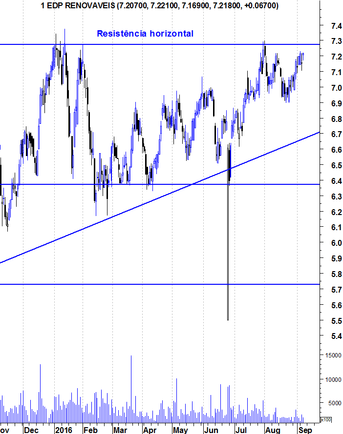 Após ter estado em queda a semana passada inteira, voltou a subir bem e estamos na zona dos 7.25.